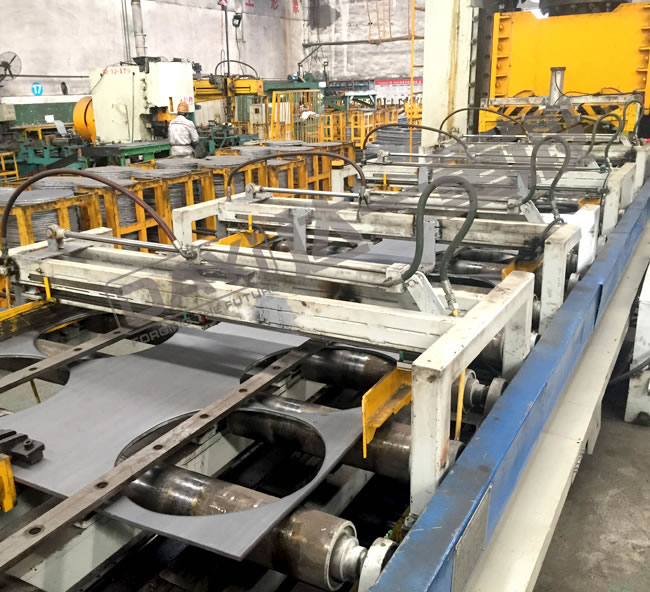 汽车钢圈落料生产线是我公司针对汽车钢圈行业定制开发的落料专用生产线,主要应用于汽车钢圈行业的落料工艺,生产线包含落料专用液压机、全自动滚轮送料装置、步进式伺服送料机械手等高度机械化的装置,可以完成送料、对中、位置检测、落料、成品钢圈输送、废料回收等工序,非常人性化,同时也大幅提高了生产效率。