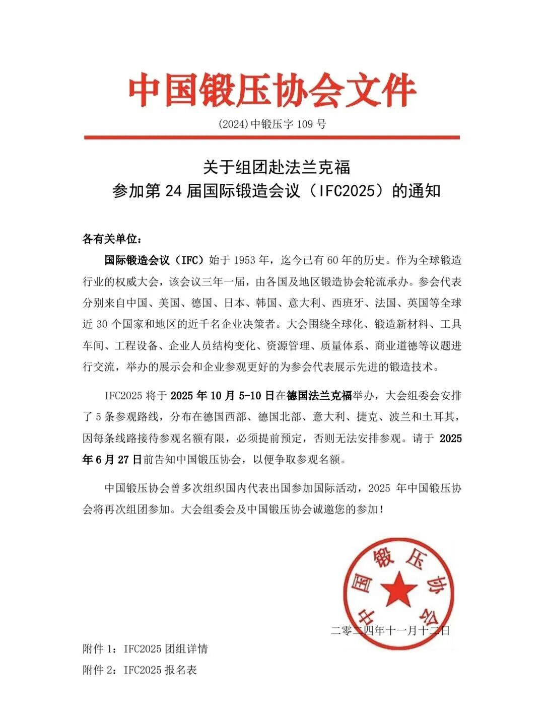 我司凭借在精密锻造领域的技术积累和市场表现,获得中国锻压协会的正式邀请,成为本次中国代表团的重要成员之一。这既是对我司实力的认可,也是展示中国锻造水平的宝贵机会。